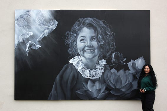 One of the most powerful examples in the chapter is the work of Evlina, who created a 12ft by 8ft mural in the academy courtyard. At its centre stands Ronahi, a name drawn from the Kurdish word for light. Ronahi is not a real person, but a symbolic figure imagined by Evlina. Through her artwork, Evlina expresses how hope, resilience and light can still emerge from experiences of darkness, displacement and loss. The team at Bede Academy have chosen to showcase the mural prominently and regularly invite members of the local community to come and see it for themselves. What I particularly love about this example is how these themes have emerged naturally through Evlina’s learning journey in art and through her wider studies. They are not treated as a bolt-on topic or a token gesture. Instead, they present authentically through the curriculum, allowing a young person’s voice, experience and creativity to speak to the community around her and to these complex topics.